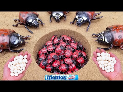 Mentos VS Coca Cola, Sprite, Monster, Fanta, different Toy insect and Mentos in underground...