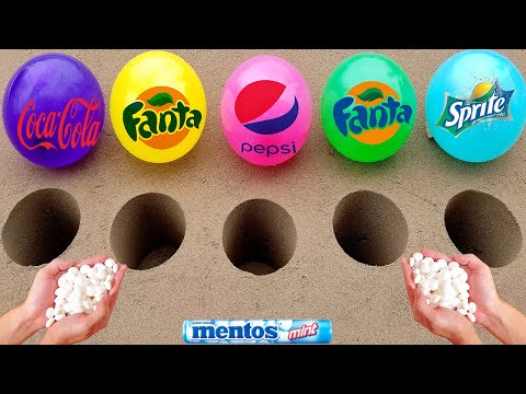 Experiment:Coca Cola, Different Fanta, Mtn Dew, Pepsi,Sprite and Balloons vs Mentos in Big Undergrou...