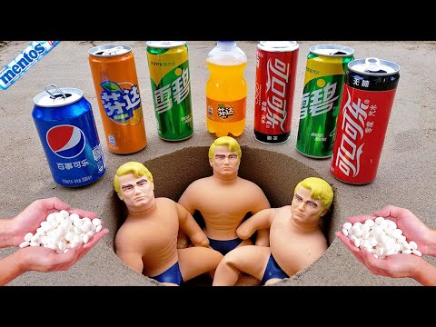 Coca Cola, Different Fanta, Mtn Dew, Pepsi,Sprite and Stretch Armstrong vs Mentos in Big Underground...